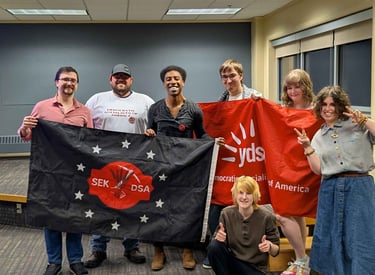 We are a political and activist organization, not a party; through campus and community-based chapters, DSA members use a variety of tactics, from legislative to direct action, to fight for reforms that empower working people.
